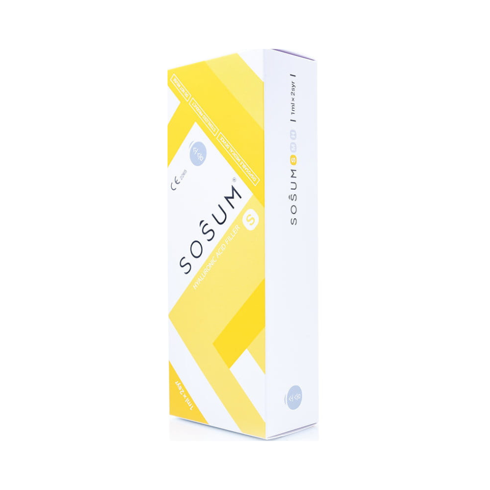 Sosum S is a stabilized hyaluronic acid- (HA)-based filler with high cross-linking rate. Sosum fillers have outstanding density, viscosity, and elasticity. The reaction of HA cross-linking is held under low temperatures, which allows obtaining dense and finely packed HA gel structure. Two-step purification of HA after the cross-linking reaction minimizes the level of residual BDDE. High cross-linking rate ensures longer effect duration due to enhanced resistance of HA to degradation. Zero residual BDDE and low endotoxin levels minimize allergic reactions and other side effects after the procedure. Low injection force of the HA gel guarantees uniform and painless distribution of the filler during injection.